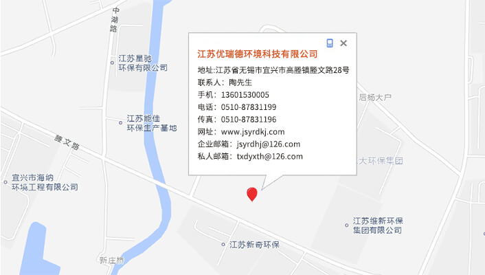 江蘇優瑞德環境科技有限公司地址:江蘇省無錫市宜興市高塍鎮塍文路28號