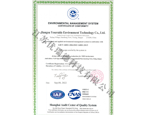 環(huán)境管理體系認(rèn)證證書-英文